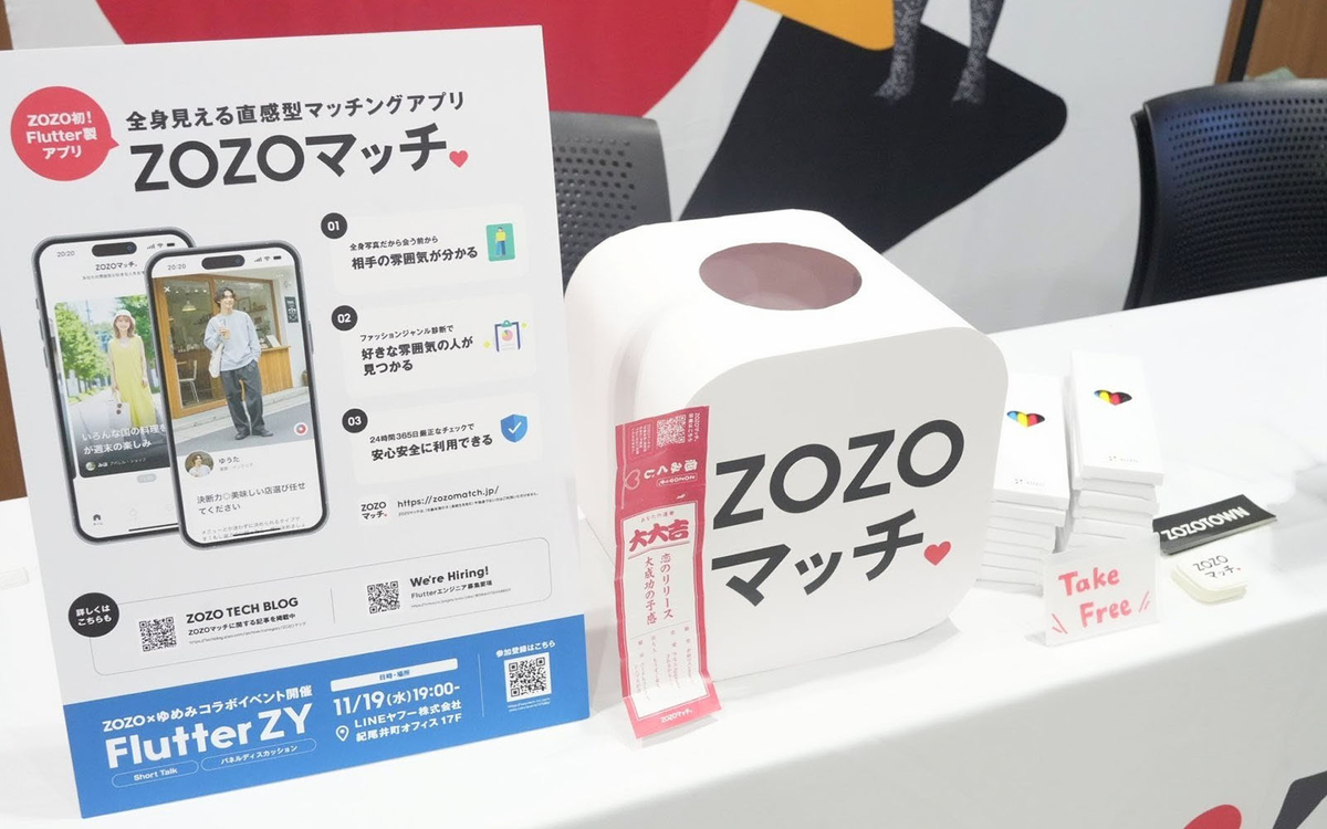 こんにちは。Developer Engagementブロックの@wirohaです。2025年11月13日に「FlutterKaigi 2025」が開催されました。ZOZOはSilverスポンサーとして協賛し、スポンサーブースを出展しました。ZOZOは、2025年6月30日にFlutter製アプリ「ZOZOマッチ」をリリースしており、今回初めてFlutterKaigiに協賛しました!
